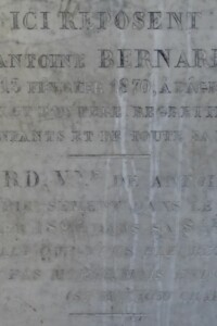 Antoine BERNARD, décédé le 13 février 1870 à l’âge de 66 ans. Il fut bon époux et bon père regretté de son épouse, de ses enfants et de toute sa famille.
