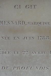 Elle décède le 3 avril 1842, à l’âge de 83 ans, à Paris (10ème). Inhumée provisoirement le 6 avril, elle rejoint ce caveau le 21 mai.