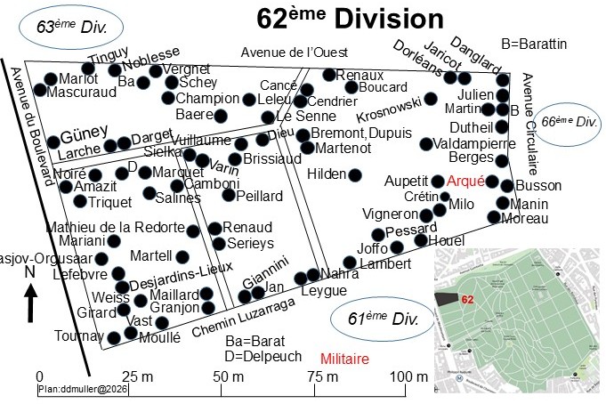 Sources : Archives départementales de la Seine (Registre des entrées du cimetière) ; Archives départementales des Yvelines (Décès de Versailles). Date de création : 2026-04-13.