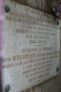 Ici repose le corps, de Louis Ferdinand DUFOURMENTEL, décédé le 20 octobre 1884 en son domicile à Vineuil (Oise), à l’âge de cinquante huit ans. Regretté de sa veuve de ses enfants, et de toute sa famille. Priez pour lui.