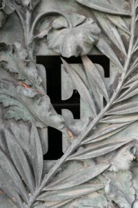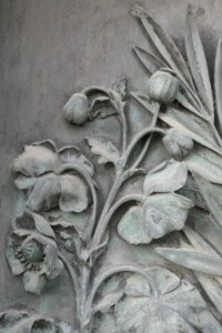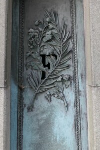 La chapelle est signée par l’architecte L. Dubreuil et par l’entrepreneur A. Bourdon et datée de 1880. Elle s’ouvre par une porte en bronze avec un bas-relief de pavots et d’une palme et une découpe avec la lettre F.