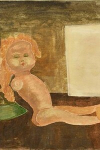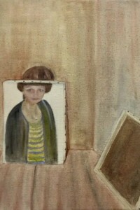 Il y a aussi des toiles de plus grand format. Mieux délimitées, plus techniques, l’artiste y inscrit son visage d’adulte, qu’elle place directement aux côtés de l’enfant qu’elle a été. Au miroir ou devant le chevalet, ces autoportraits émouvants racontent au présent sa fragile tentative de s’appréhender, de se dessiner, de s’aider.