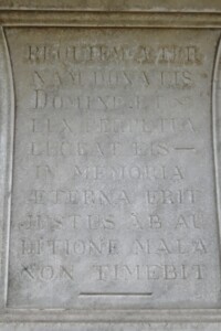 (Latin : Donne-leur le repos éternel, Seigneur, et que la lumière éternelle brille sur eux – dans la mémoire éternelle, les justes n’auront pas peur d’entendre le mal.)