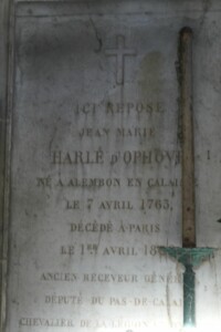 Jean Marie Harlé d’Ophove, seigneur de Bellevue, voit le jour le 7 avril 1765, à Alembon (Pas-de-Calais). C’est le fils de Jean Harlé (x-1767), propriétaire laboureur, et de Marie Marguerite Françoise Lavoisier, son épouse (x-1776).