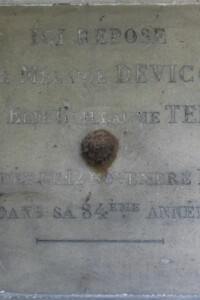 Ici repose Elise Mélanie DEVICQUE, veuve de Elie Guillaume TEISSIER, décédée le 12 novembre 1890, dans sa 84ème année.