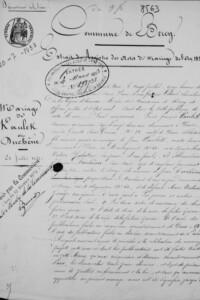 Elle épouse Louis François Kaulek (1810-1880), maître serrurier mécanicien, à Bercy le 20 juillet 1833. Ils auront un fils, Joseph Alexandre Kaulek (1835-1886), constructeur mécanicien, né à Paris (10ème), le 1er mai 1835.
