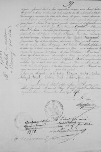 Alexandrine Éléonore Duchêne voit le jour à Bercy (aujourd’hui éclaté entre le 12ème arrondissement de Paris et Charenton-le-Pont) en 1813. C’est la fille de Jean Duchêne (1781-1835), marchand de vin en gros, et de Marie Victoire Jouy (1790-1833), mariés à Bercy le 21 décembre 1811.