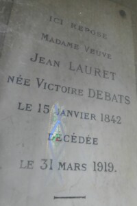 Ici repose, Mme Veuve Jean LAURET, née Victoire DEBATS, le 15 janvier 1842, décédée, le 31 mars 1919.
