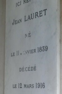 Ici repose, Jean LAURET, né, le 11 janvier 1839, décédé, le 12 mars 1916.