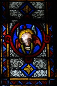 - agenouillé, jouant de la musique, pleurant, semant des fleurs, etc. : Arnaud (deux vitraux), Bain, Blétry, Chameroy, Chevallier (de style Art Nouveau), Cochin, Courlet, Drevon (deux vitraux, de style gothique, avec un phylactère indiquant, en latin, « Heureux ceux qui reposent » et un autre « Mon âme vit et te loue »), Gascoin, Guilhem Pothuau, Lehmann, Périer, Thomas, Trinidad Schutte ;