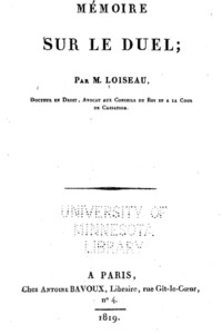 - Mémoires sur le duel (Paris, 1819) ;