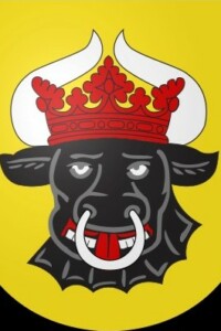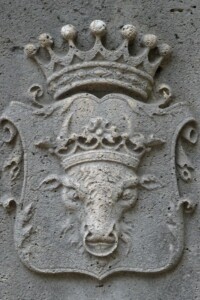 Son blason, en termes héraldiques, est : « D’or à un rencontre de buffle de sable langué de gueules accorné et bouclé d’argent couronné de gueules. »