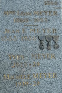 Yves (Léon) Meyer voit le jour le 18 décembre 1923, à Paris (16ème). C’est le fils de Jean Elie Meyer (1888-1986), imprimeur, et de son épouse Nancy Baer (1899-1998).