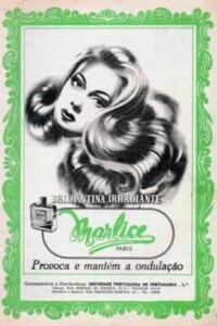 Lees deux publicités ci-dessous datent de 1943 et sont les premières à paraître dans des magazines portugais. Celle de gauche annonce : « Le rouge à lèvres préféré des stars françaises ». Celle de droite est très inhabituelle, car elle utilise Clark Gable et Vivien Leigh du film « Autant en emporte le vent ». Elle montre que les produits Marlice sont utilisés par des acteurs très connus de l’époque.