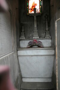 Le fronton de la chapelle contient un haut-relief en pierre avec deux mains, de facture inconnue. La chapelle est ornée d’un vitrail peint avec Saint Antoine, de facture inconnue.