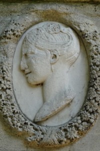 La stèle est ornée d’un médaillon en marbre représentant Caroline de profil, dans une couronne de fleurs, ni signé ni daté.