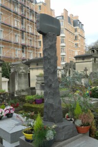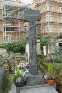 La dalle est surmontée d’une croix signée par Harry Kivijärvi et datée de 1973). L’épitaphe (and ink the silence) est une citation d’un texte d’Aleksi Barrière qui forme la conclusion de sa dernière œuvre.