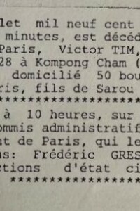 Victor Tim Naing voit le jour le 13 mai 1928, à Kompong Cham (Cambodge, alors sous protectorat français). C’est le fils de Sarou Tim. Il fait partie d’une génération marquée par les bouleversements de l’histoire en Extrême-Orient.
