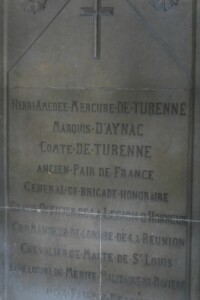 Henri Amédée Mercure de TURENNE, marquis d‘AYNAC, comte de TURENNE, ancien pair de France, général de brigade honoraire, grand-officier de la légion d‘honneur, commandeur de l’ordre de la réunion, chevalier de Malte de St Louis, et de l’ordre du mérite militaire de Bavière, né à Pau en Béarn, le 23 septembre 1776, décédé à Paris, le 16 mars 1852.