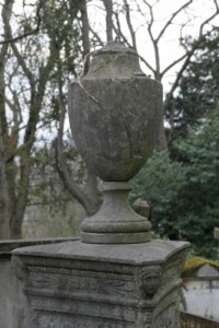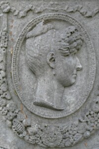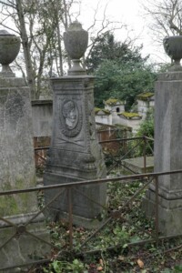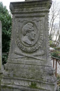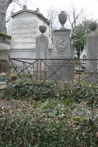 La sépulture est ornée d’une urne et de trois médaillons, de forme ovale, œuvres de Pierre Alphonse Fessard.